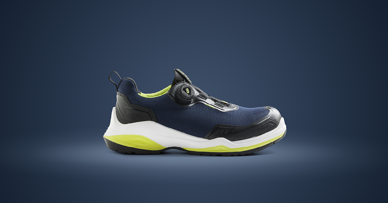 Une chaussure de haute qualité avec une tige textile, renforcée au niveau des orteils et du talon. Le système de serrage millimétrique sur le côté permet de serrer et de desserrer facilement les chaussures de sécurité. Languette en néoprène développée pour un confort accru.